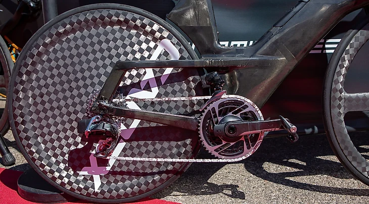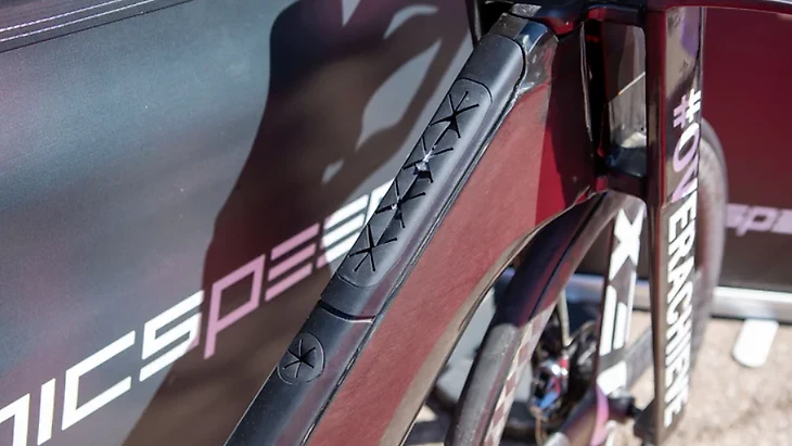 Широкая конструкция вилки тоже выбрана не случайно: зазоры позволяют воздуху проходить сквозь велосипед, что также частично снижает сопротивление. Подобный ход предложил один из консультантов по аэродинамике, который ранее работал в Формуле-1.