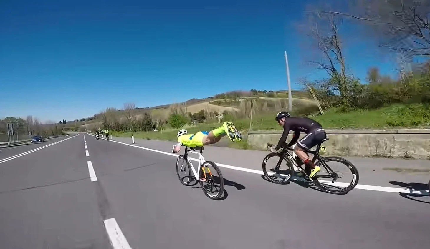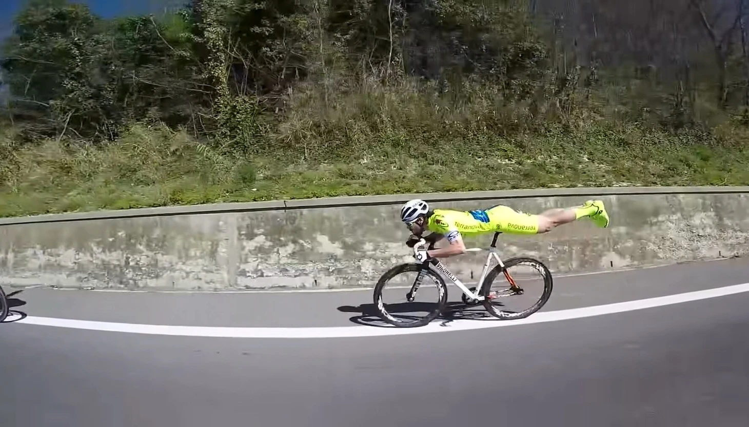 В велогонках есть очень необычный прием: спортсмен ложится животом на сиденье и вытягивается параллельно асфальту. Да что рассказывать, посмотрите: