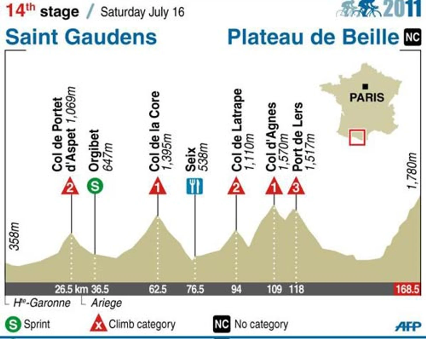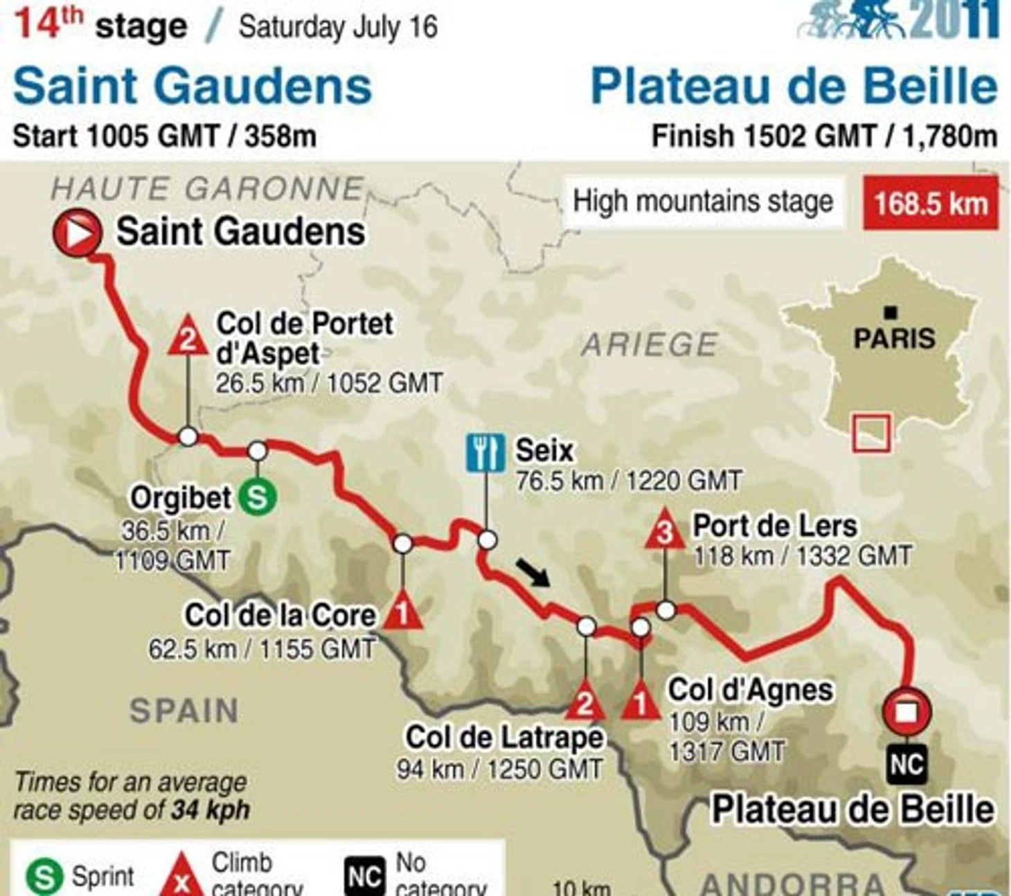 15.00 Добрый день! Sports.ru предлагает вашему вниманию текстовую трансляцию 14-го этапа «Тур де Франс-2011» c восхождением на Плато-де-Бель.