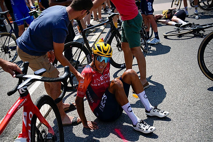 «На дорогу вылезла рука и толкнула гонщика – все сразу посыпались на асфальт, как конфеты Skittles», – возмущался комментатор Eurosport Карлтон Кирби в прямом эфире.