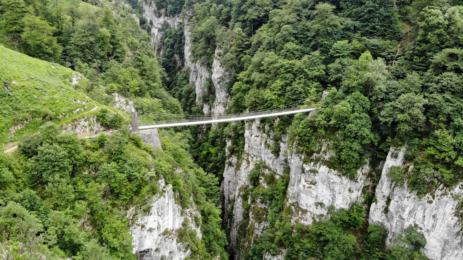 Достопримечательность этапа: Перед началом восхождения на Пуэрто-де-Ларрау или Ларро (в зависимости от того, испанский или французский вариант названия вы предпочитаете) от одноименной деревушки гонщики проедут поблизости с подвесным пешеходным мостом Хольцарте. Его название в переводе с баскского языка означает «между стенами», что вполне соответствует его местоположению над ущельем. К нему идет пешеходная тропа, которая начинается у отеля и идет вдоль бурной реки, поднимается по достаточно крутым каменным склонам, и пересекает лес. Только после этой часовой прогулки вы подойдете к самому мосту, который расположен на высоте ста пятидесяти метров над ущельем. Рискнули бы на него выйти?