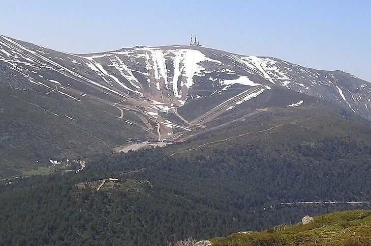 Девушки поедут по тому же самому хребту, но с другой стороны и доберутся до вершины Пуэрто-де-лос-Котос, от которой следует развилка. Если поехать направо, то через шесть километров ложной равнины можно добраться до той самой Навасеррады. Девушек же пустят налево, чтобы финишировать на горнолыжном курорте Вальдески. Если посмотрите на фотографию, то в самом центре кадра на краю лесного массива увидите саму станцию, к которой с разных сторон словно прямыми лентами спускаются трассы и подъемники - именно туда прибудет караван Женской Вуэльты Испании в финальный день. А на самой макушке горы над Вальдески возвышаются телевизионные антенны, и о них мы чуть позже обязательно поговорим.