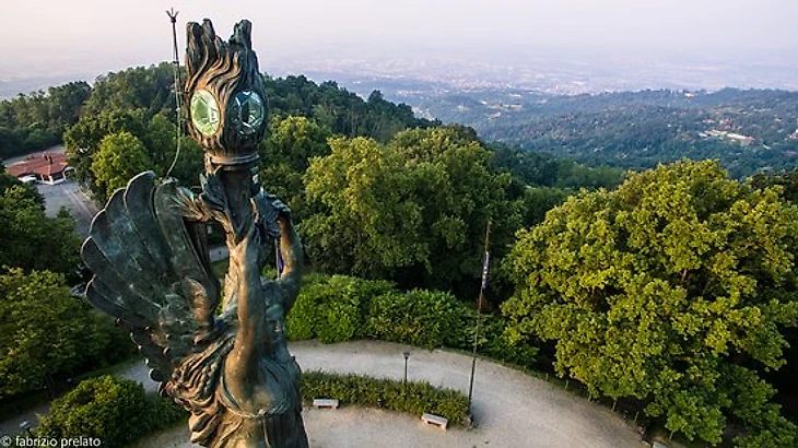 Затем последует спуск, некатегорийный подъем к парку и церкви Сан-Вито и самое сложное восхождение дня на Колле Маддалена (7 километров со средним градиентом 6,8%). Несмотря на то, что это название уже прижилось, орфографически правильно это место именовать Брик-делла-Маддалена, и оно является частью сети холмов вдоль реки По. В древние времена гору использовали как форпост, а первые упоминания Марии Магдалины можно встретить только в XIII веке, когда сюда пришли монахи доминиканцы. В настоящее время ее символом стал Маяк Победы – это грандиозная статуя в виде женщины с крыльями и поднятыми вверх руками, которыми она держит факел, символизирующий победу Италии в Первой мировой войне над Австрией и Германией. Линза маяка расположена непосредственно в самом факеле.