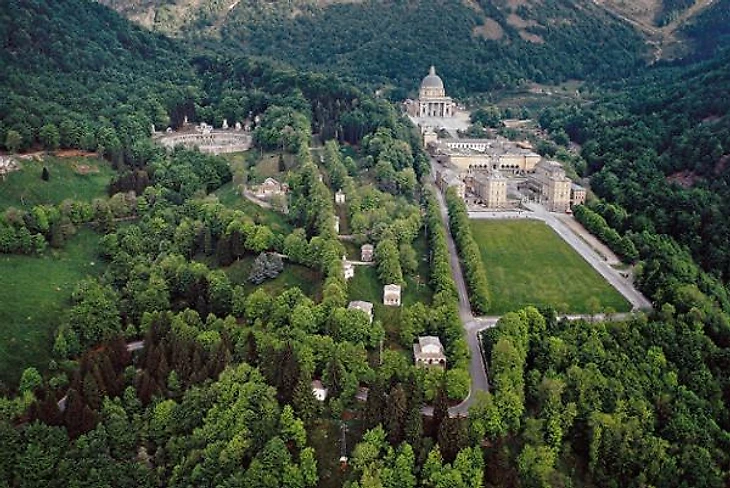 О Сантуарио-ди-Оропа слышали многие, но далеко не все знают, что в него принято включать не только само нынешнее святилище, но и первоначальную церковь, построенную на месте древней часовни, а также всю Сакро-Монте, то есть Священную гору с ее комплексом из 19 часовен, которые находятся за стенами святилища. Несмотря на то, что стройка велась на протяжении целого века, первоначальный проект так и не был полностью завершен, и часть задумок не реализовали на деле. Хотя цель всего этого гигантского строительства, развернувшегося в Италии с конца XV века, все же достигнута – Священные горы смогли стать для паломников безопасной альтернативой путешествию на Святую Землю.