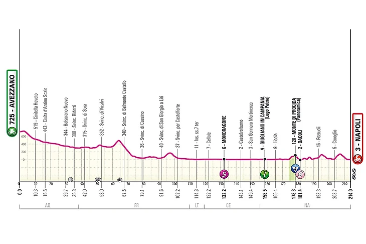 Какие-то активные действия и неожиданные сюрпризы могут произойти только в последний час гонки, когда пелотон будет приближаться непосредственно к Неаполю. Здесь организаторы приготовили четыре небольших «холма», которые сами по себе не выглядят очень сложными, но на фоне общей усталости могут сыграть свою роль и отсеять того, кого команды очень бы не хотели терять: от штатного спринтера до почувствовавшего себя нехорошо генеральщика.