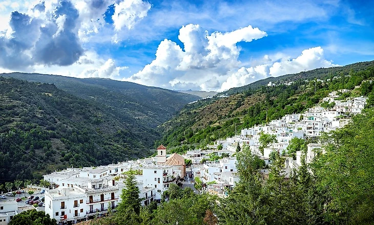 Тем не менее, как мы понимаем, у Сьерра-Невады есть и южные склоны. Они в меньшей степени привлекательны с туристической точки зрения, поскольку и дорог к вершинам толком нет, и достопримечательностей с обзорными площадками совсем немного, да и все поселения довольно скромные. Тем не менее, весь этот район имеет общее название Альпухарра, которое предположительно происходит от арабского слова, означающего «горные пастбища». Сюда едут исключительно в поисках местного колорита: походить по узким улочкам старинных деревень, увидеть горные ущелья и реки, попробовать местные блюда, приготовленные из тех, кто еще недавно пасся на здешних лугах. Вуэльта заезжала сюда лишь раз, в 2015 году, тогда финиш был в Капилейре, которая является одной из самых высокогорных деревень на южных склонах.