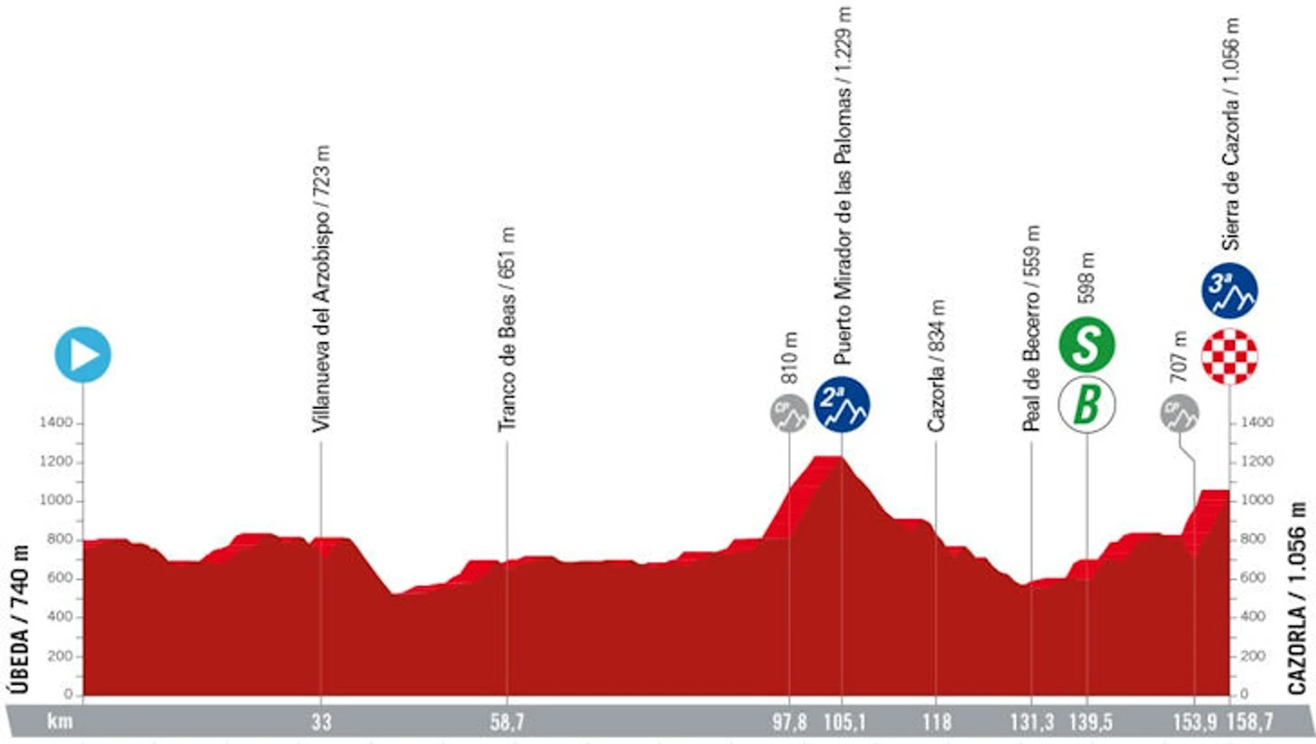 Во время спуска с «мирадора» гонщики проедут Касорлу, которая станет финальной точкой маршрута. Но прежде чем финишировать, им придется добраться до низины, сделать небольшую петлю, разыграть бонусные секунды со спринтерской премией, после чего вновь совершить восхождение на Сьерра-де-Касорла (4,8 километра со средним градиентом 7,1%), но уже по другой, более крутой дороге. Подъем очень неоднородный: пологие участки в 3% чередуются с жуткими рампами под 17%, и так повторяется несколько раз вплоть до самого финиша, притом последние сотни метров будут крайне тяжелыми.