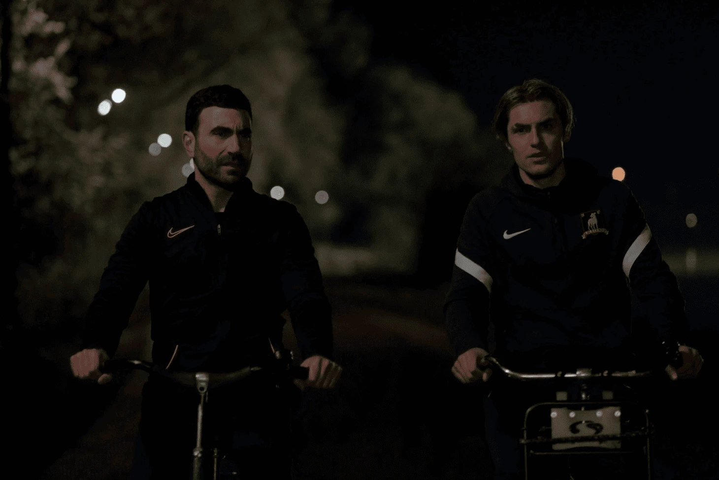 Герои сериала «Теда Лассо» едут по ночному Амстердаму. Один учит другого кататься на велосипеде. Символично, что местом действия выбрана самая известная велосипедная столица мира.