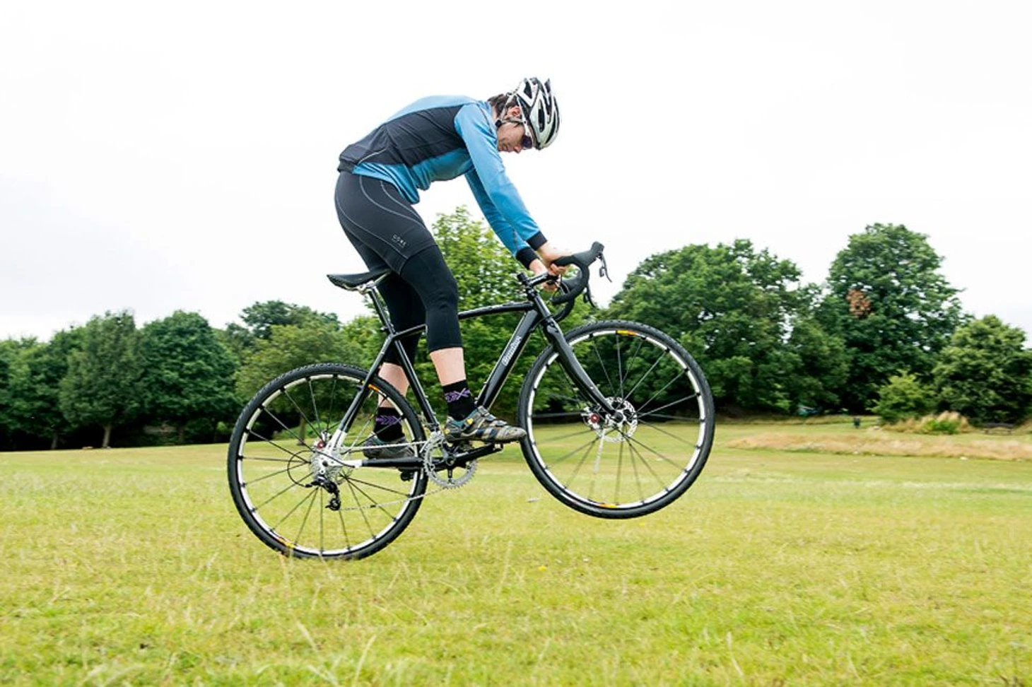 Если уточнять про шоссейные гонки, то такой маневр применяют при проезде лежачих полицейских или трамвайных рельсов, чтобы было меньше перегрузок при их проезде.