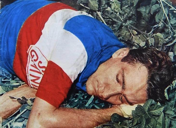 Ривьер упал через пятнадцать метров. Он приземлился в русле небольшого ручья, усыпанного опавшими листьями. Он лежал совершенно неподвижно, его спина была сломана. Официальные лица гонки и журналисты бросились туда. Один из фотографов почувствовал, что Ривьер находится не в самом удачном положении для съемки; он хотел что-то изменить, но ему помешала профессиональная этика: работа журналиста заключается в том, чтобы записывать, а не вмешиваться. И он сказал: «Роже». А Ривьер, полностью в сознании, но с колющей болью в спине, повернулся к нему и посмотрел на него. Его голова, лежащая на жухлых папоротниках, блестит от пота, правая рука подложена под щеку, левый глаз открыт: он видел все — от смены колеса до смерти включительно. Говорят, что после несчастного случая Ривьер был весел, как никогда. Он больше никогда не ездил на велосипеде и умер от рака в сорок лет. Он был рожден для невезения.