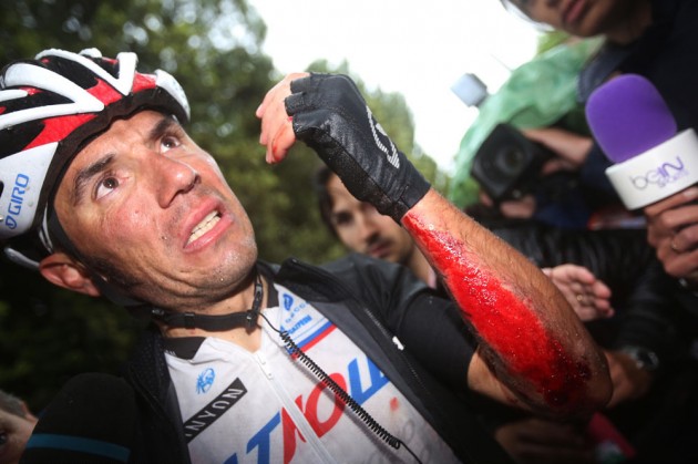 У «Гармина» нынешняя Джиро пошла под откос с первого же этапа. Кто бы мог подумать, что всех шансов на приемлемое выступление в генерале команда лишится в командной разделке. На одном из участков дороги случилось ужасное – единоличный капитан гарминовцев Дэни Мартин из Ирландии упал на огромнейшей скорости, поскользнувшись на мокром люке. Мало того, что упал сам лидер, так он еще увлек за собой полкоманды. В итоге, Мартин продолжить гонку не смог из-за перелома ключицы. По той же причине завершил Джиро испанский спринтер Кольдо Фернандес.