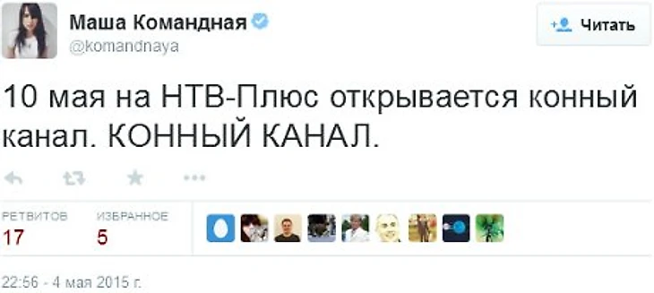 «10 мая на НТВ-Плюс открывается конный канал. Конный канал», – написала Командная.