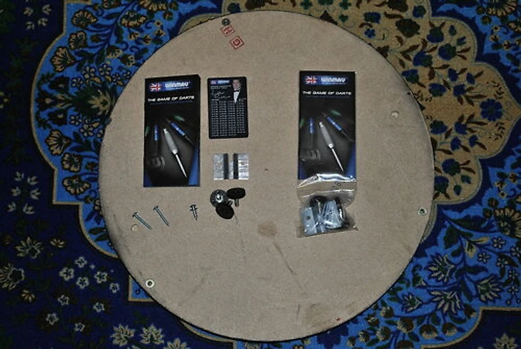 Далее распаковываем наших подопечных для более детального осмотра, обмера и обвеса. Комплектация обеих моделей абсолютно идентична: крепеж на стену о двух шурупах, основной держащий шуруп в центр мишени, таблица окончаний и брошюрка с подробной справочной и кое-какой рекламной информацией. В брошюрке, помимо всего прочего, даны все расстояния для того, чтобы правильно повесить мишень не только в стандартном варианте, но и для спортсменов-колясочников.