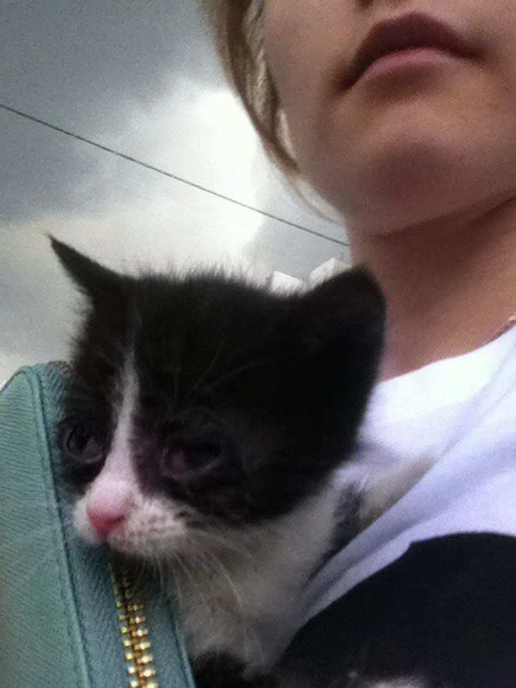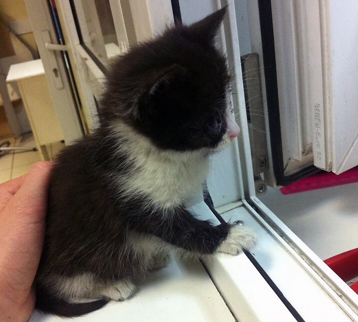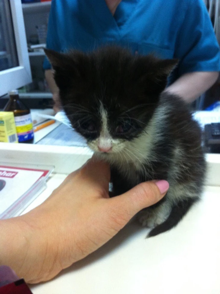 Малышка было вся в гное: глаз не видно, нос залеплен, но жить очень хотелось. Ну как пройти мимо? Да, дома 2 кота, и что?