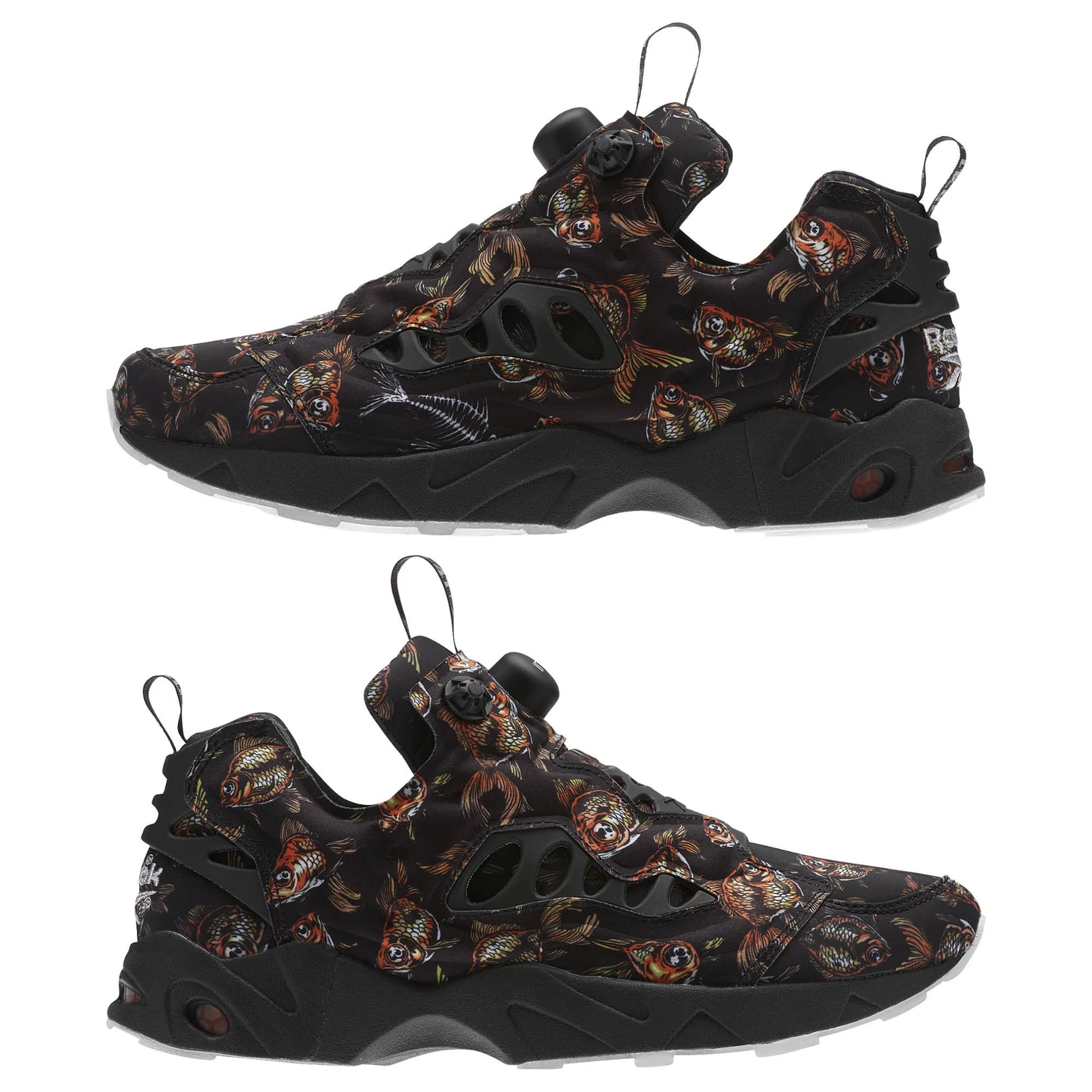 Несколько дней назад Reebok анонсировали другой новый вариант InstaPump Fury – с узором в виде золотых рыбок. В России обе модели кроссовок продаются за 12990 рублей.