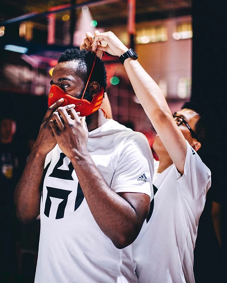 Джеймсу Хардену подарили маску, сделанную из его именных кроссовок adidas Harden Vol.1.