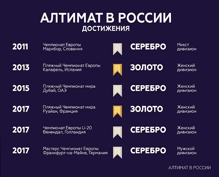 «Золото» девушек в Руайане — едва ли не главная победа отечественного спорта этого лета. Новость о триумфе на французских пляжах сразу же подхватили многие СМИ — за спортивными изданиями тренд подхватили «Дождь» и «Москва 24», а в июле алтимат появился и в сетке трансляций «Матч‑ТВ». «Полёт» летающего диска в информационном пространстве обеспечил шквал упоминаний вне коммьюнити и подготовил почву для развития алтимат фрисби. Что есть сейчас?
