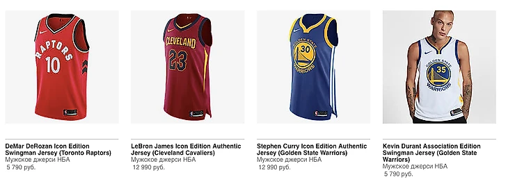 C 29-го сентября в официальном онлайн магазине Nike появилась долгожданная коллекция Nike x NBA, главная вещь которой — джерси с чипом NFC. К большому сожалению, цены для России оказались какие-то совсем заоблачные. Майка с чипом стоит 12 990 рублей, обычное джерси — 5790, простая хлопковая футболка с принтом — 2790.