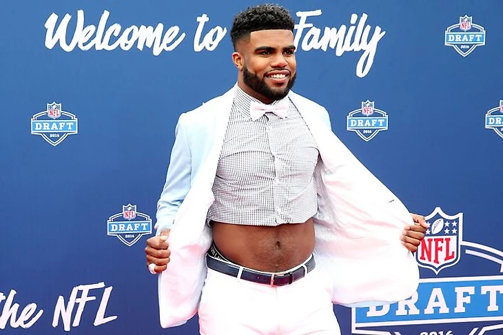 Эллиотт пришел в НФЛ в 2016-м. На драфте его многие запомнили из-за необычного аутфита. Эзекиль пришел на церемонию в обрезанной рубашке, которая даже не доходила до пупка. На вопросы он ответил просто: «Я хочу отличаться от всех остальных».