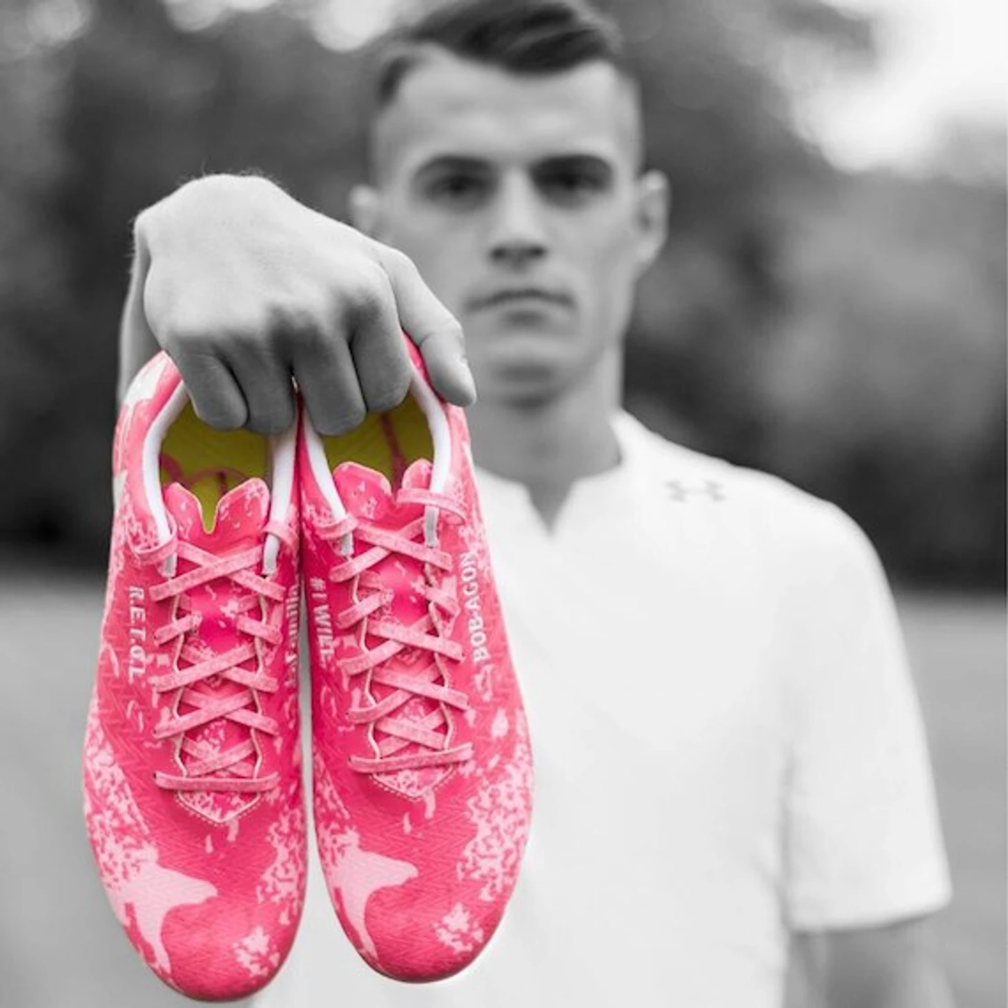 «Рак молочной железы – жуткая болезнь, от которой страдают целые семьи. Не только женщины, но и дети, мужья, матери и отцы. Нужно быть очень сильным и смелым, чтобы бороться с таким врагом каждый день и не терять надежду. Именно поэтому я с гордостью надену бутсы, которые олицетворяют боевой дух этих людей», – подписано фото в инстаграме игрока. Кроме Джаки, в бутсах такого же цвета собираются играть Мемфис Депай и молодой защитник «Ливерпуля» Трент Александр-Арнольд.