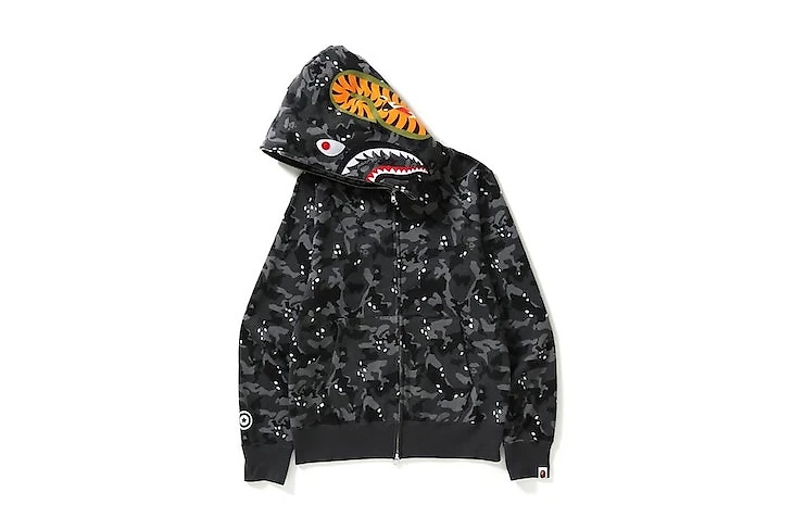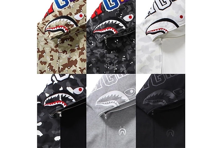 Японский бренд A Bathing Ape показал шесть новых расцветок своей самой известной вещи – худи с акулой на капюшоне.