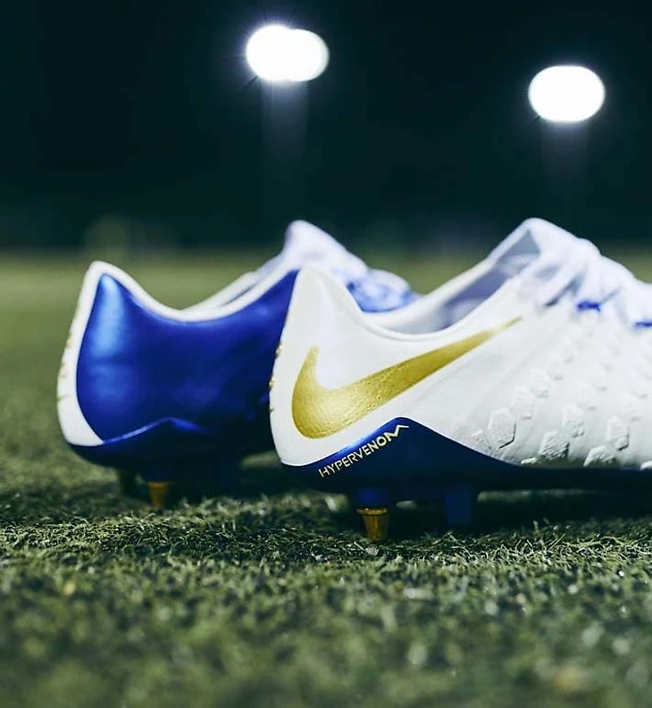 Модель называется Nike Hypervenom Phantom III Elite Kane. На шнурках и на внутренней стороне – фамилия нападающего, на задней части бутс – число 100.