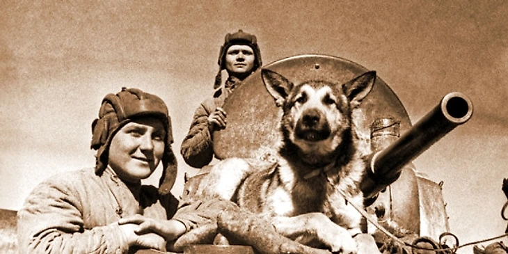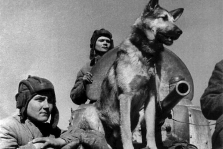 Собаки были и взрывниками: неся на себя взрывчатку, бросались под танки. В Сталинградской битве собаки сожгли 63 танка врага — целый танковый батальон.