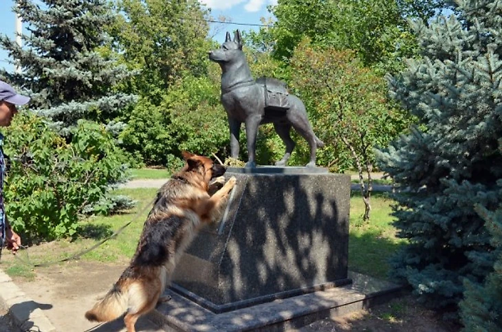 Памятник собакам-истребителям танков в Волгограде. Благодарный потомок отдает дань памяти своему славному предку-солдату!