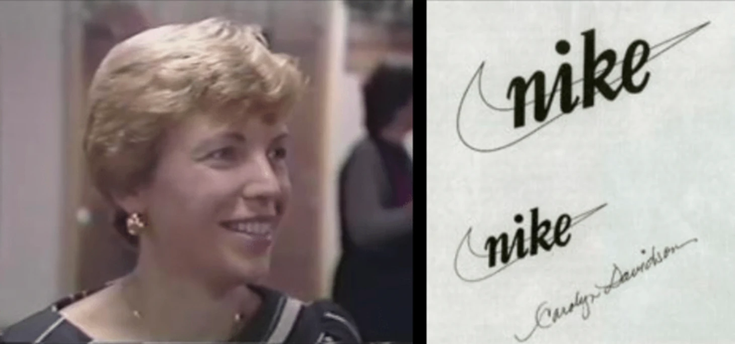 Найт обратился к Кэролин Дэвидсон, студентке факультета графического дизайна в университете Портленда, где сам и учился. Они познакомились, когда Фил случайно услышал в коридоре, как девушка жалуется, что у нее нет денег на курсы живописи. Найт подошел и предложил ей работу – за два доллара в час рисовать леттеринг, логотипы и другую графику. Она согласилась и написала на листке бумаги свое имя и телефон.