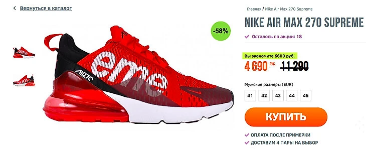 Все супер, вот только обувь Плющенко – фейк. Кроссовки на фото — китайская копия модели Nike Air Max 270, стилизованная под коллаборацию с нью-йоркским стритвир-брендом Supreme. Скопирована цветовая палитра Supreme, добавлен его логотип, но такой модели официально никогда не было. Интересно, Евгений в курсе?