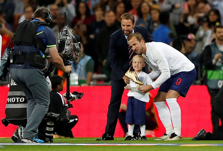 Сегодня Харри вышел в этих бутсах на игру с Испанией. Перед матчем ему вручили приз лучшему бомбардиру ЧМ-2018.
