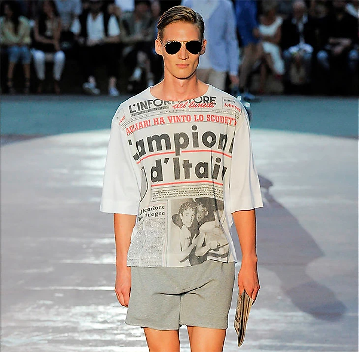 Принт на футболке – первая полоса сардинской (Маррас – уроженец Сардинии) газеты L’Informatore от 13 апреля 1970 года. Выпуск посвящен победе «Кальяри» в чемпионате Италии. Он до сих пор рекордный по продажам для газеты (и есть на ebay за 25 евро).