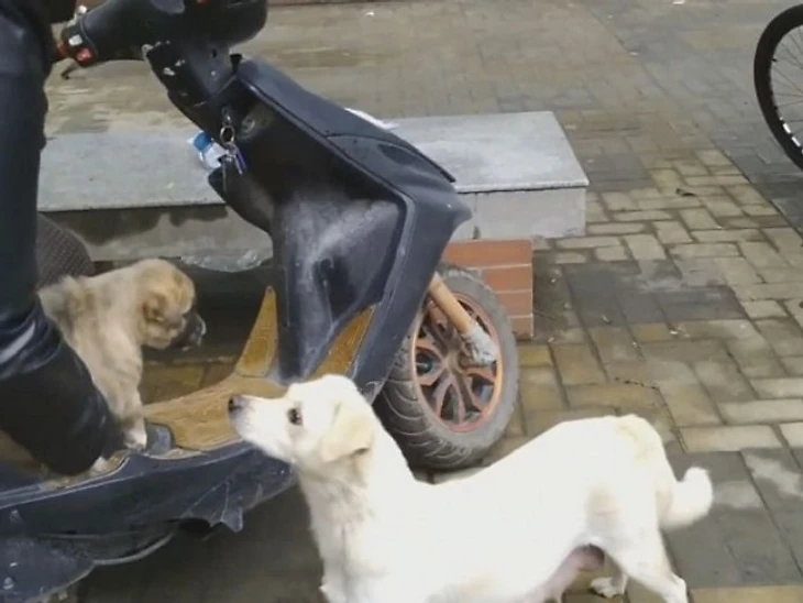 Китаянка решила приютить щенка, мать которого обитает на территории университета. Прощание, после просмотра которого невозможно сдержать слезы, состоялось на стоянке, куда припарковала свой скутер новая хозяйка щенка. Собака в последний раз обнюхала детеныша, а в ее глазах была нескрываемая боль разлуки.