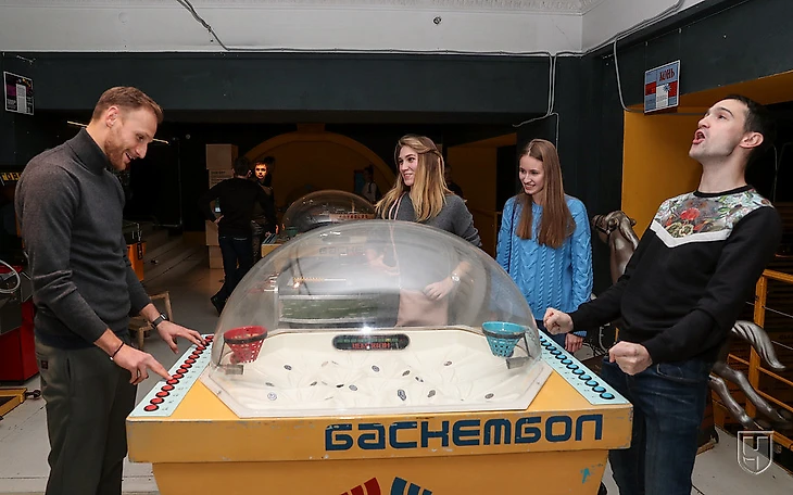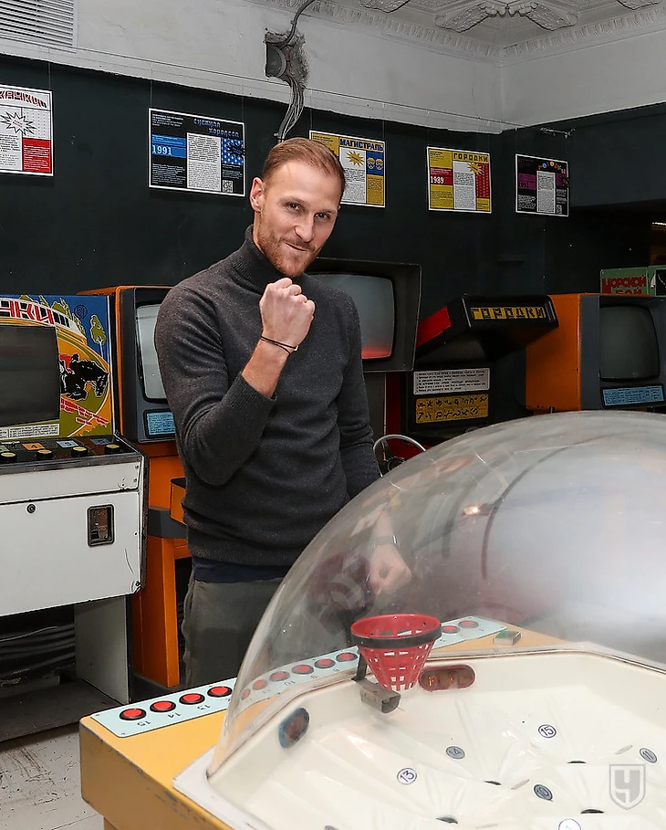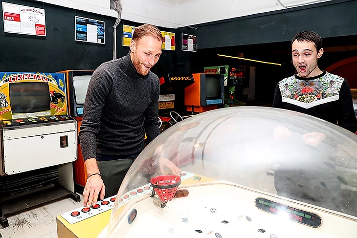 Чемпион мира в составе сборной Германии Бенедикт Хеведес в московском музее игровых автоматов сыграл в советские аппараты.