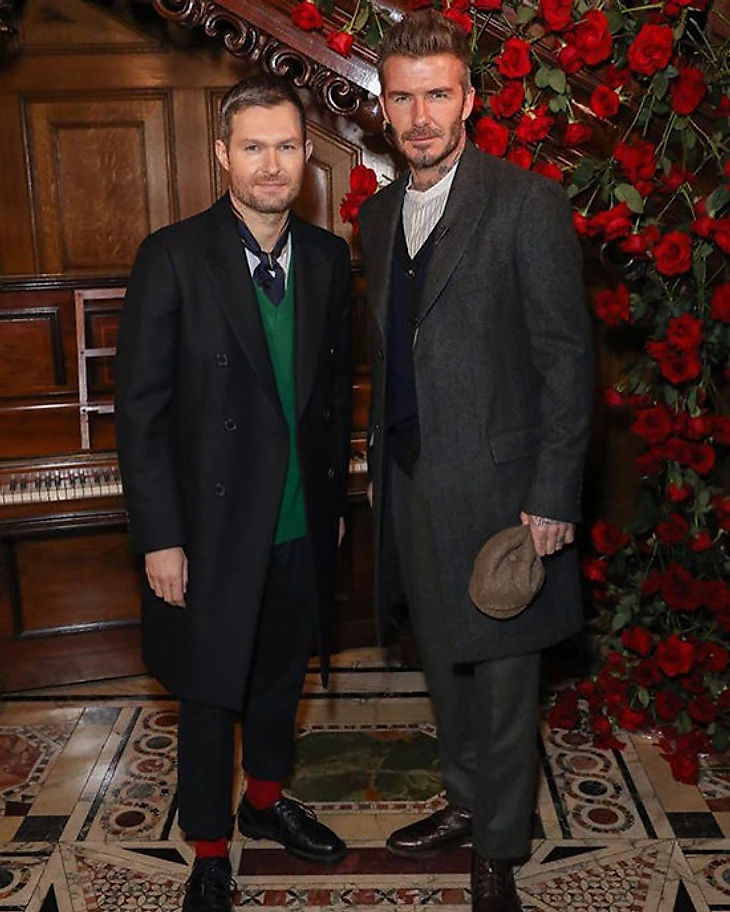 Бекхэм по полной вписался в тему с «Острыми козырьками». Он появлялся на съемочной площадке сериала, а на показ Kent & Curwen пришел в костюме из новой коллекции (выглядел так аутентично, что пошли слухи: Бексу дадут маленькую роль в «Козырьках»).