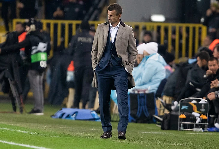 Семак выглядел так же (только в другой обуви) в следующем матче – с «Уфой». Получается, что он выглядел одинаково три матча подряд. Но после вылета «Зенита» из Лиги Европы этот костюм мы больше не видели.