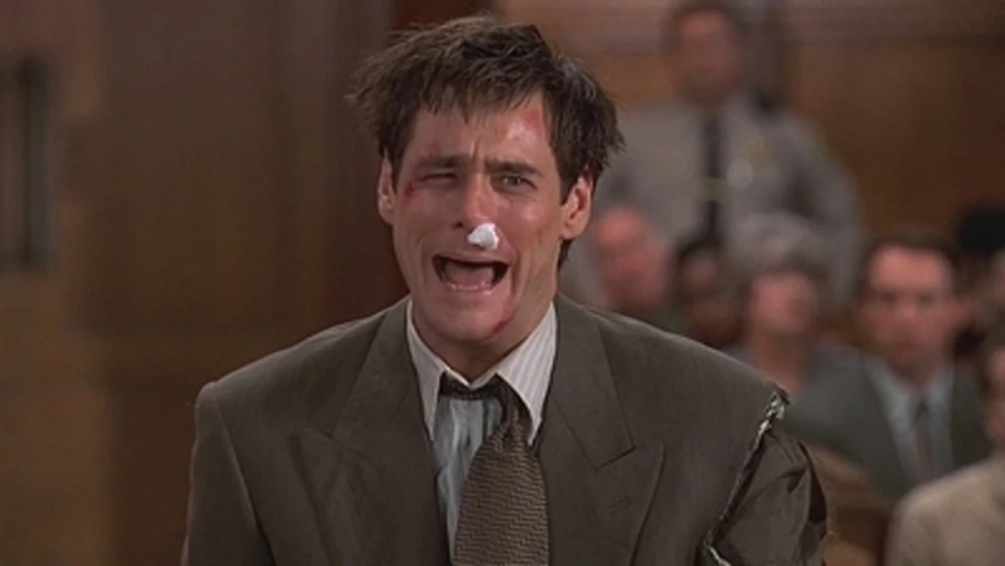 Претендент 2. «Флетчер Рид и его альтер эго дерутся в туалетной комнате здания суда.»