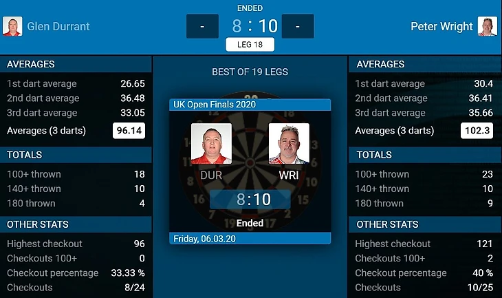 Питер Райт обыграл Глена Дюрранта в очень упорном матче