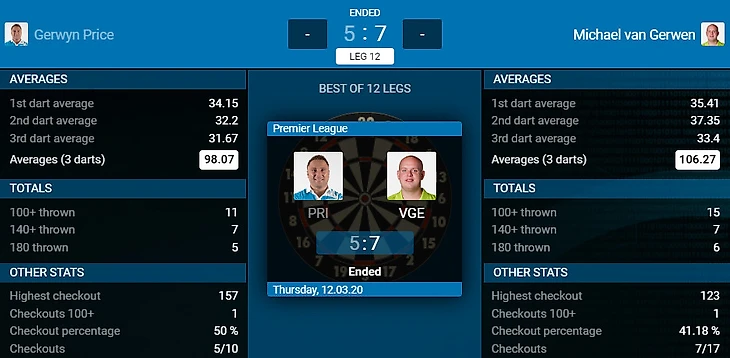 Premier League Darts 2020. Week 6