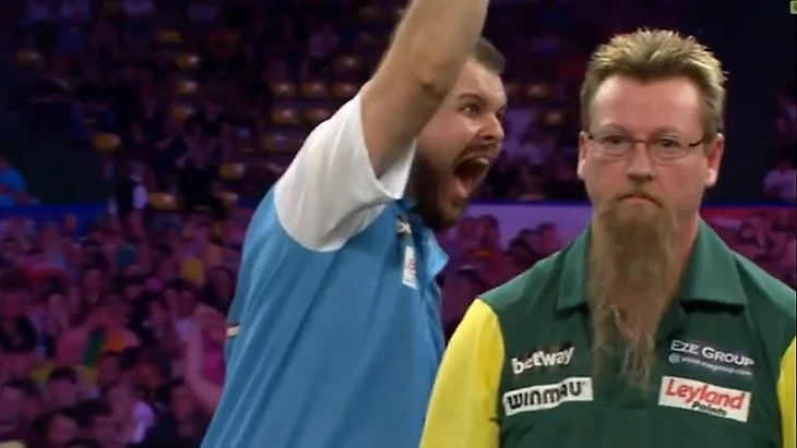 Но именно Борису было суждено закрепить эту победу. Александр одним подходом сократил 200 очков до 60, а ответный потолок от Кайла оказался агонией — он даже его не праздновал, лишь грустно посмотрев в зрительный зал. Подошедший после него Кольцов закрылся третьим дротиком, счёт стал 4:0, — и вот тут началась вакханалия.