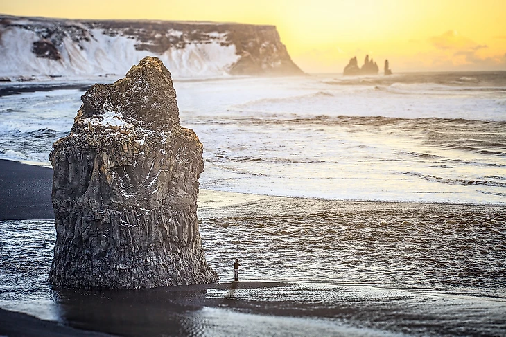 И хотя исландский климат не располагает к продолжительным купаниям, местные пейзажи стоит увидеть своими глазами: с черного пляжа хорошо видны вырастающие из воды базальтовые валуны и колонны черного цвета «Рейнисдрангар» (Reynisdrangar) или «Пальцы тролля».
