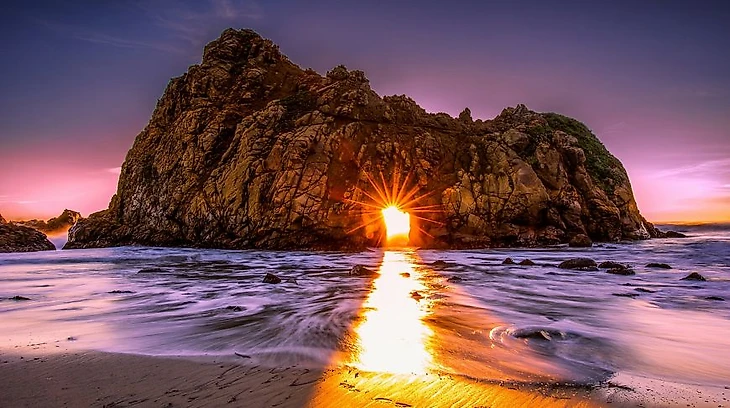 Pfeiffer Beach – один из самых популярных пляжей на центральном побережье. Он также известен благодаря скале Keyhole Rock – популярному объекту фотографии.