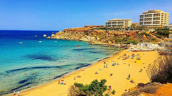 Золотой пляж в золотом заливе между двумя живописными мысами находится в популярном курорте Мальты - городе Меллиха. Этот пляж считается одним из самых красивых в стране.