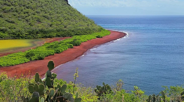 К югу от Сан-Сальвадора лежит небольшой остров Рабида, привлекающий фотографов и зевак своими темно-красными пляжами.