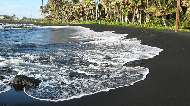 Угольный цвет песку придает базальтовая крошка от местного вулкана. Песок, как и в случае с Папаколеа, с собой лучше не брать — нет, власти вас не оштрафуют, но богиня вулканов может наслать проклятие.