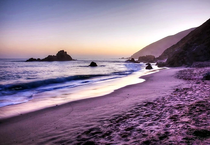 Единственный и неповторимый пурпурно-фиолетовый пляж Пфайффер находится на территории центральной Калифорнии, в малонаселённом районе Биг Сюр округа Монтерей, и входит в состав национального парка Лос-Падрес в Калифорнии.