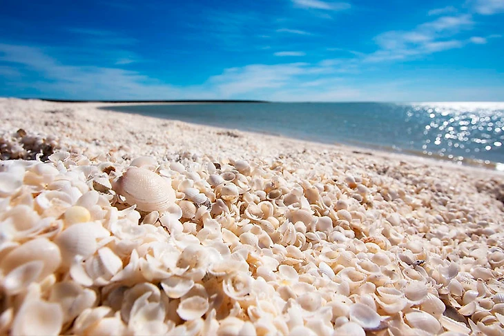 Шелл Бич расположен на узком перешейке в заливе Шарк, своеобразном входе на побережье Западной Австралии. Шелл Бич - уникальный пляж, название которого переводится как «пляж ракушек».