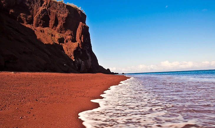 Этот изумительный пляж имеет красный оттенок из-за большого содержания железа в окружающих скалах.