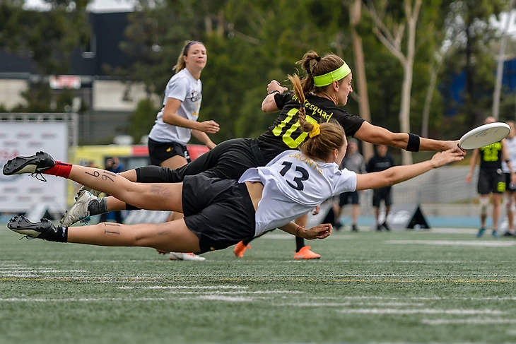 Для начала стоит в двух словах рассказать о правилах алтимата. На поле, размером 100х37, играет 2 команды по 7 человек в каждой. С двух сторон, как в регби-7, находятся зоны. Команды начинают в своих зонах, одна команда вводит диск в сторону другой и та начинает свою атаку. Цель игры – поймать диск в зоне соперника. Двигаться с диском в руках нельзя, продвигать его можно только пасуя между собой. Как и в баскетболе, жесткий контакт и опасная игра запрещены. Поймали диск в зоне соперника – гол. Диск упал на землю или улетел в аут – право атаки переходит сопернику.