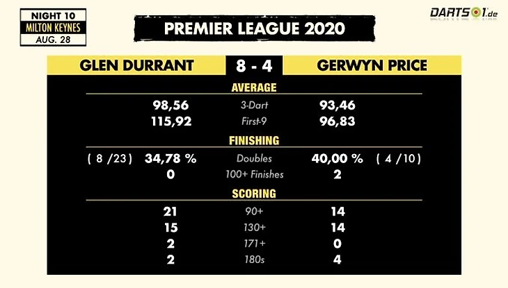 Недавно перешедший в PDC трёхкратный чемпион мира BDO продолжает крушить всё на своём пути. Третья подряд победа практически гарантирует Глену Дюрранту путёвку в плэй-офф в дебютном сезоне.